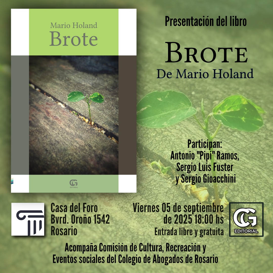 Publicado por la editorial rosarina Ciudad Gótica, Brote representa una exploración creativa de Holand, que dialoga con el ámbito jurídico desde una perspectiva literaria, contribuyendo a la difusión cultural dentro de la abogacía rosarina.