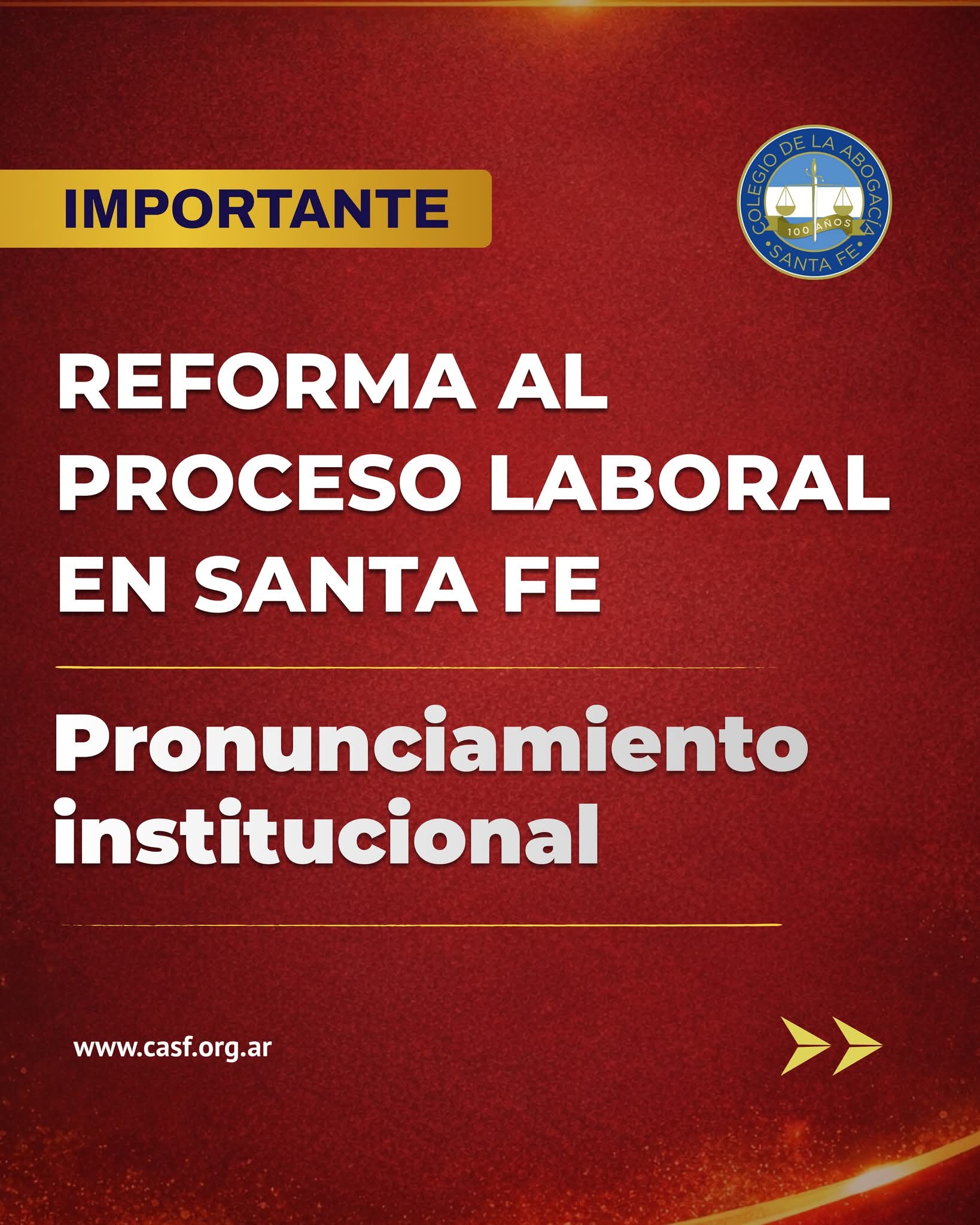 El Colegio de Abogados de la ciudad capital provincial emitió un importe pronunciamiento institucional en el que manifiesta su “profunda preocupación” por el proyecto de ley que introduce modificaciones al Código Procesal Laboral (Ley N.º 7945) y a la Ley 14.003, recientemente aprobado por la Cámara de Diputados de la provincia. Hasta el momento Casa de Abogados no conoce pronunciamiento del Colegio de Abogados de Rosario.