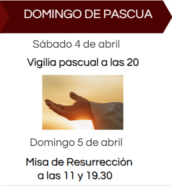 Finalmente, el Domingo de Pascua (5 de abril) se celebrará la Misa de Resurrección en dos horarios: 11:00 y 19:30, conmemorando la resurrección de Jesucristo.
