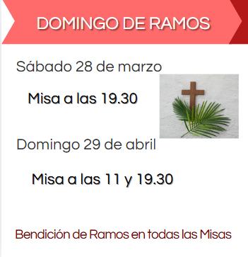 El cronograma comenzó con el Domingo de Ramos, que se celebró el sábado 28 de marzo a las 19:30 y el domingo 29 a las 11:00 y 19:30, con bendición de ramos en todas las misas.